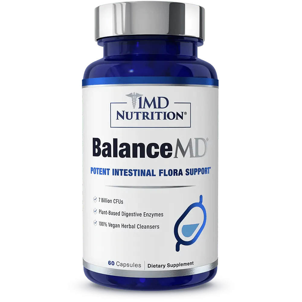 BalanceMD® broad-spectrum formula combines probiotics, plant-based digestive enzymes, and powerful botanicals to promote a healthy intestinal flora balance.* Key ingredients like oregano extract and caprylic acid support gut health, while aloe vera and digestive enzymes aid digestion and maintain a healthy gut lining.* With 7 billion CFUs of Lactobacillus acidophilus, BalanceMD® supports immune health, a balanced microbiome, and overall digestive comfort.*