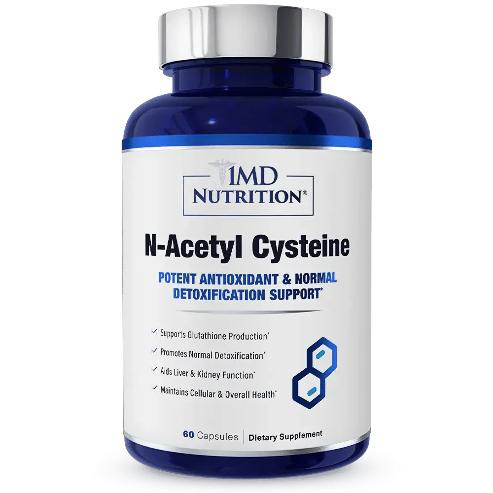 1MD Nutrition’s N-Acetyl Cysteine (NAC) is scientifically formulated to provide antioxidant & normal detoxification support.* As a dietary supplement, NAC promotes the natural balance of glutathione levels in healthy adults.* Glutathione is a critical antioxidant in the body, promoting the body’s healthy response against common oxidative stress to maintain healthy cells and tissues.* NAC offers broad-spectrum benefits to maintain optimal overall health and support the immune, respiratory, liver, kidney, and antioxidant systems.*